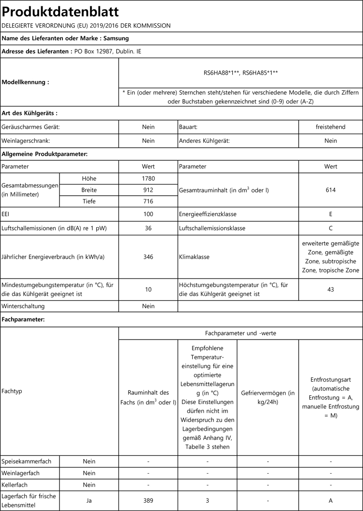 • Energieeffizienzklasse: E auf einer Skala von A (höchste Effizienz) bis G (geringste Effizienz)