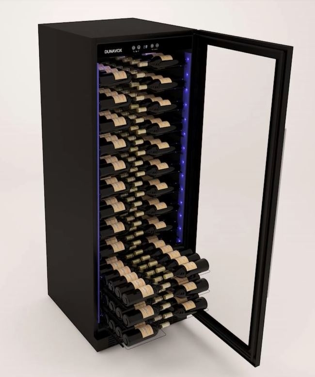 Ein freistehendes und einbaufähiges Modell mit einem Fassungsvermögen von 143 Flaschen aus dem exklusiven Sortiment von Dunavox. Das elegante Äußere des SS-Modells verfügt über einen Edelstahlgriff und die schwarze Einheit über einen schwarzen Griff. Der Grande-143 eignet sich perfekt für moderne Küchenumgebungen, Restaurants oder Hotels. Die Flaschen werden von Patentregalen gelagert, die in ein atemberaubendes hellblaues,weißes und amber Multi LED Interieur sind.