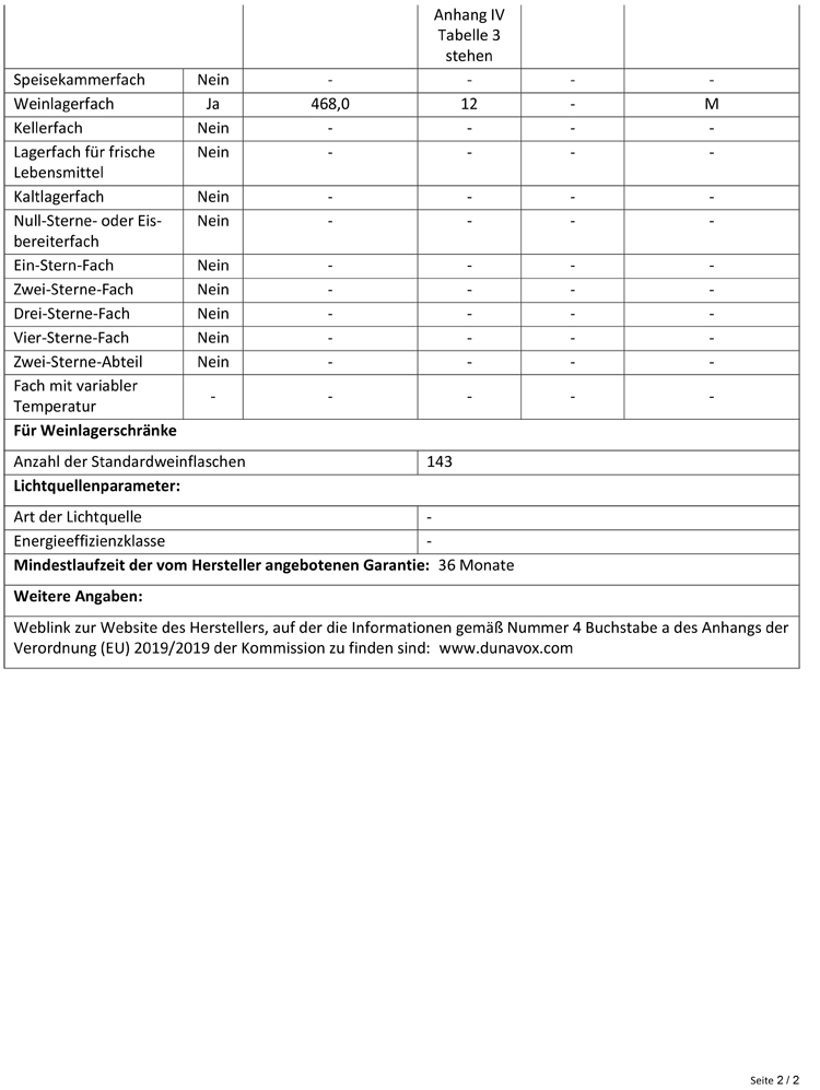 Kapazität Flaschen: 143 (0,75l Bordeaux)