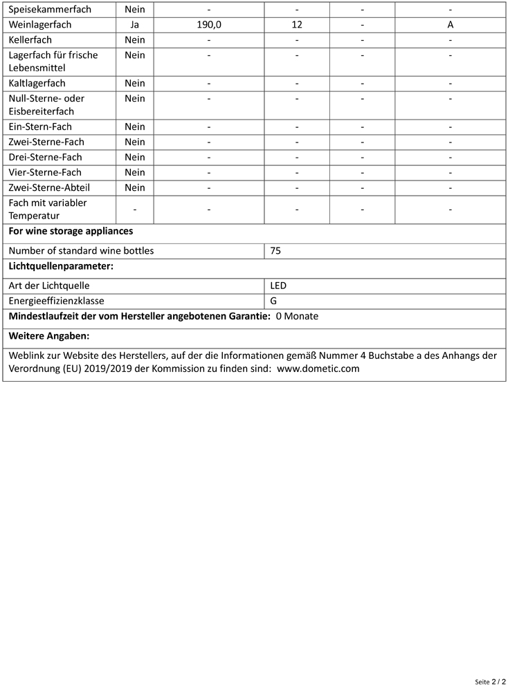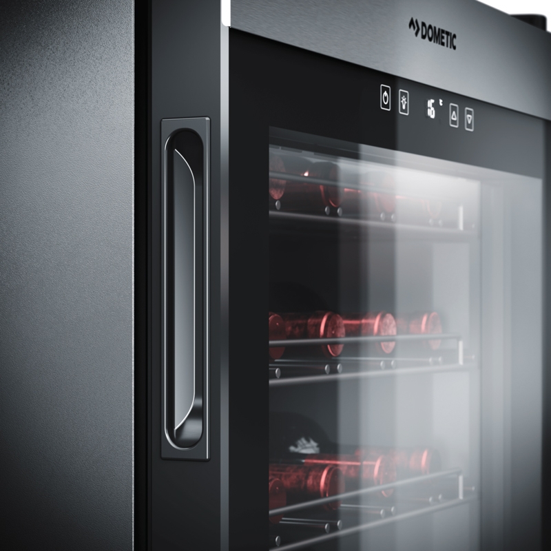Ein freistehender Dometic Weinkühlschrank ist nicht nur ideal zur Weinlagerung, er ist auch die perfekte Ergänzung für Ihr Zuhause. Er überzeugt mit einem klassischen Design mit Edelstahlakzenten und einem eingelassenen, seitlichen Türgriff. Die 3-lagige Glastür schützt den Wein vor schädlichem UV-Licht. Bewahren Sie bis zu 75 Flaschen Wein bei idealer Trinktemperatur auf (5–22 °C). Beschichtete Fächer halten jede Weinflasche sicher. Mit Hilfe der ausgeklügelten Heiz- und Kühltechnik ist die gewählte Temperatur rasch erreicht und wird zuverlässig beibehalten. Das effiziente Luftzirkulationssystem schafft ein ideales Klima, in dem der Wein hervorragend altern und sein Bouquet und Aroma optimal entfalten kann.