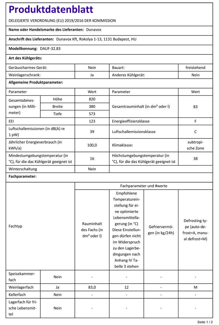 Jahresverbrauch gilt bei Voraussetzung einer Umgebungstemperatur von 25°C und einer Betriebstemperatur von ≥4°C.