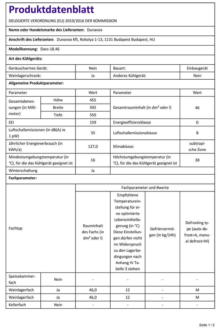 Dunavox Soul 18, Weinkühlschrank, schwarz, DAVS-18.46B. Mit 3 Jahren Garantie!products_warranty_conditions