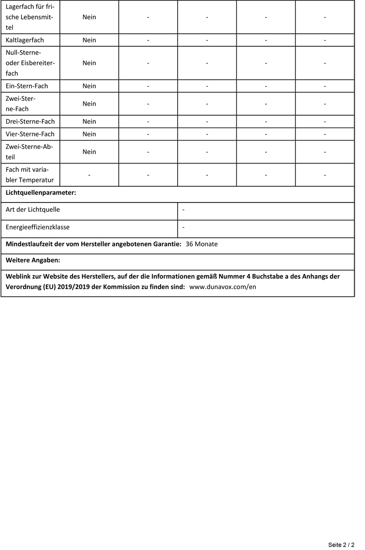 • Jahresverbrauch gilt bei Voraussetzung einer Umgebungstemperatur von 25°C und einer Betriebstemperatur von ≥4°C.