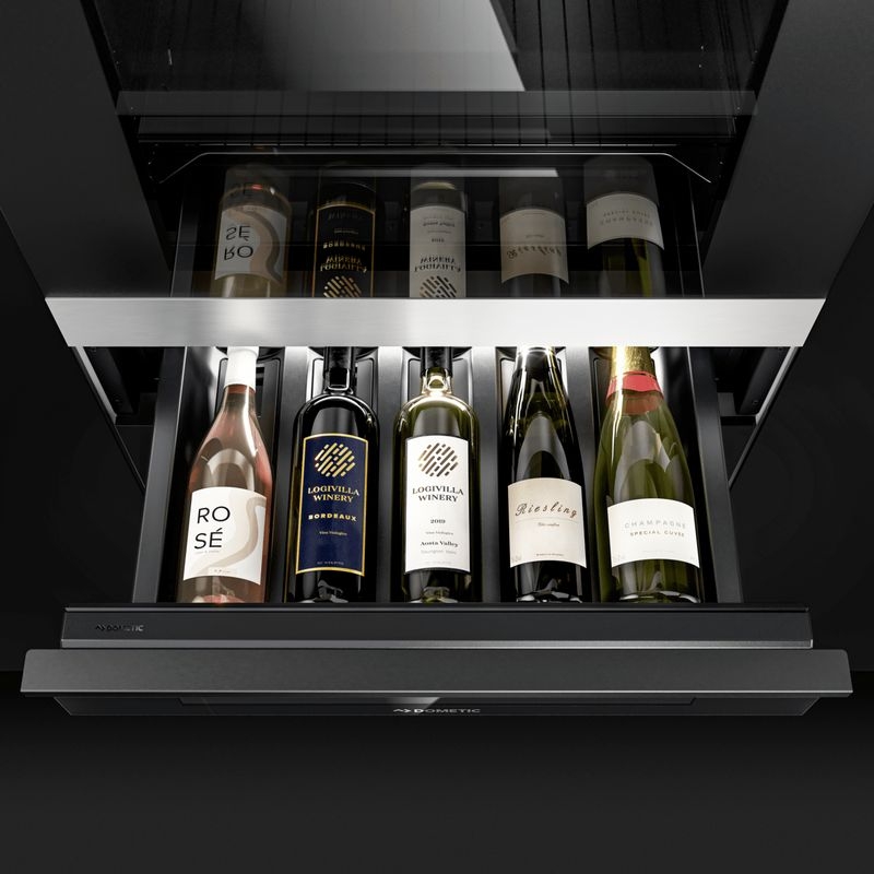 Dometic Draw Bar 5B, Weinklimaschublade, zum Einbau, Kapazität 5 Flaschen, Front schwarzes Glas