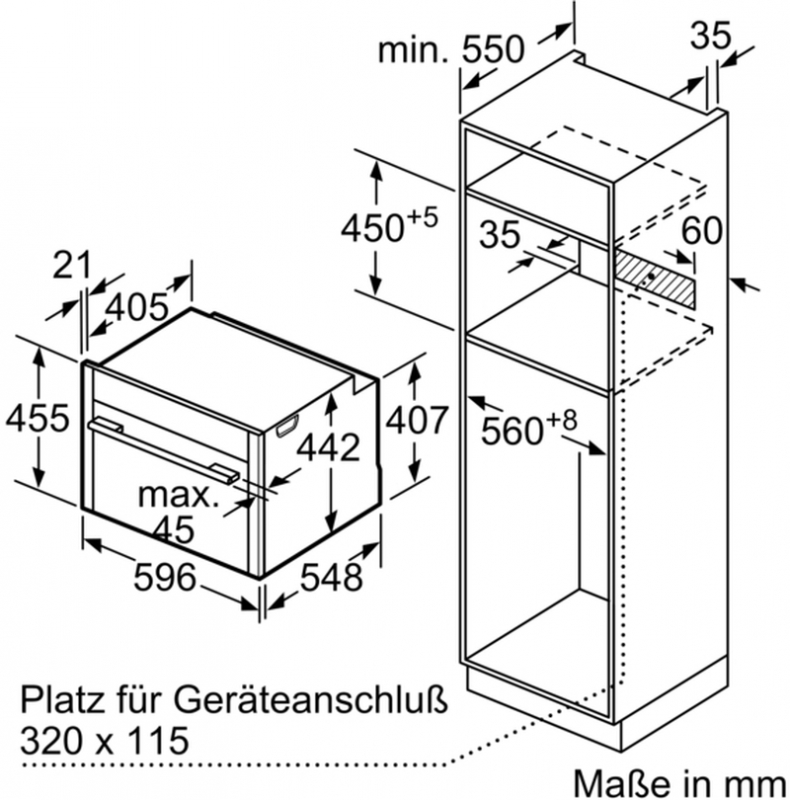 • Nischenmaße (HxBxT): 455 mm x 560 mm x 550 mm