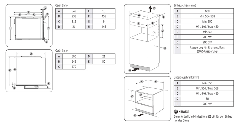 - Nischenmaß (B x H x T) mm 564-568 x 446-450 x 550 (Min.)