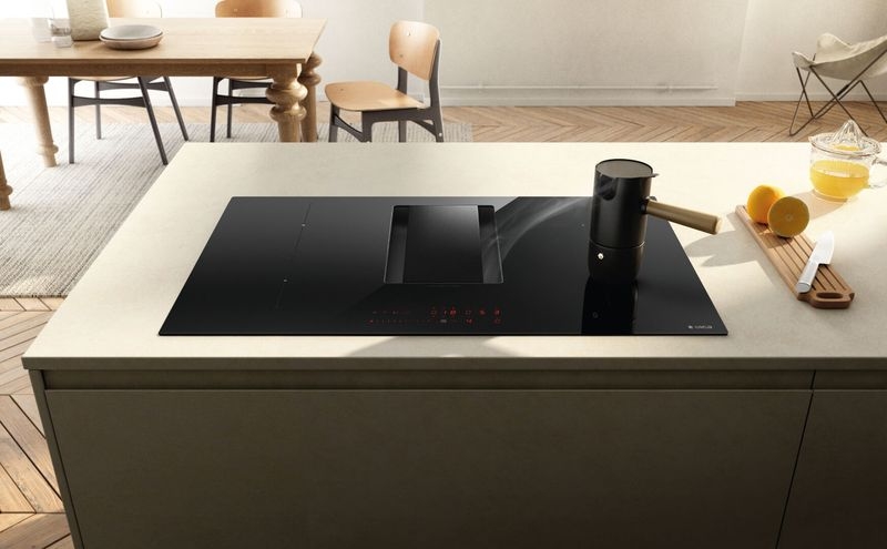 - integrierter Kochfeldabzug mit Abluftbetrieb