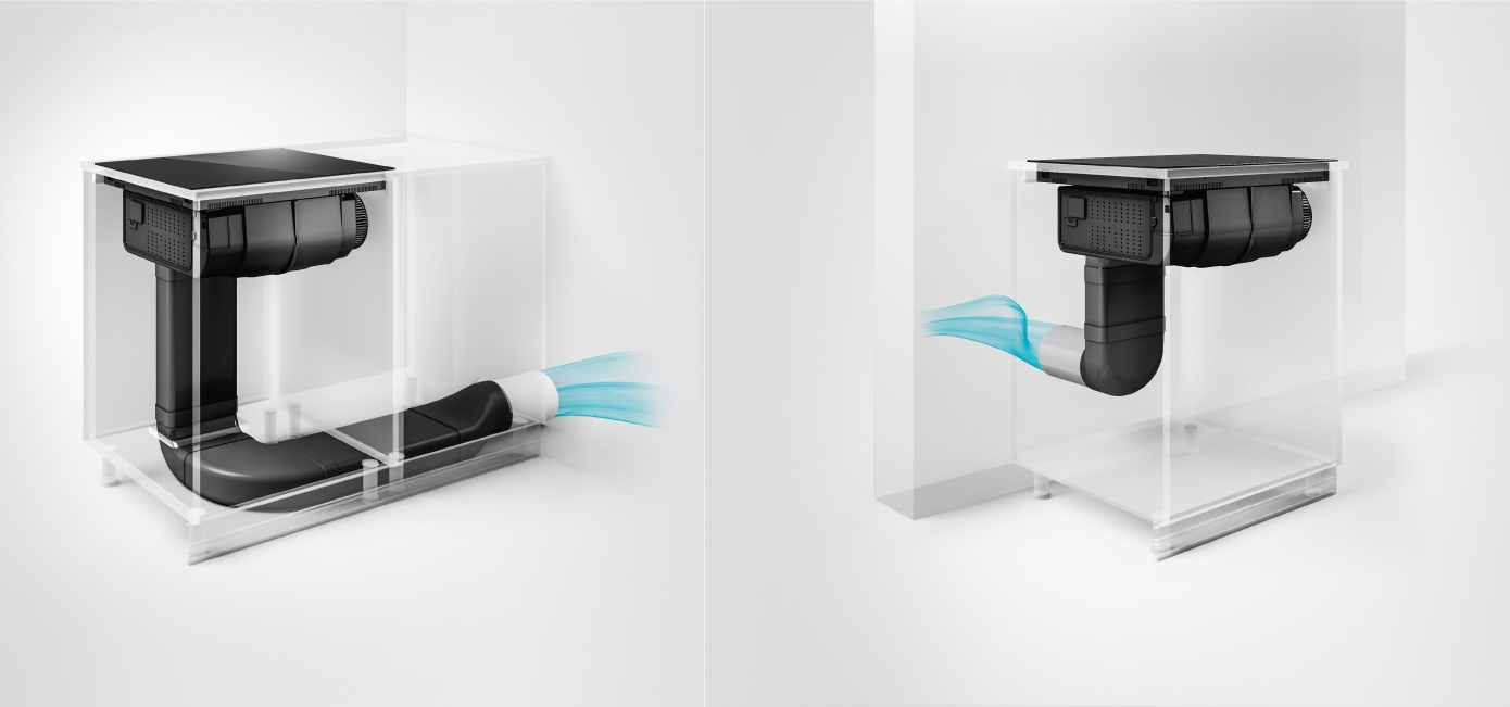 ACHTUNG: Die Abluftführung samt Kanälen und Zubehör ist individuell zu planen und zu erwerben.