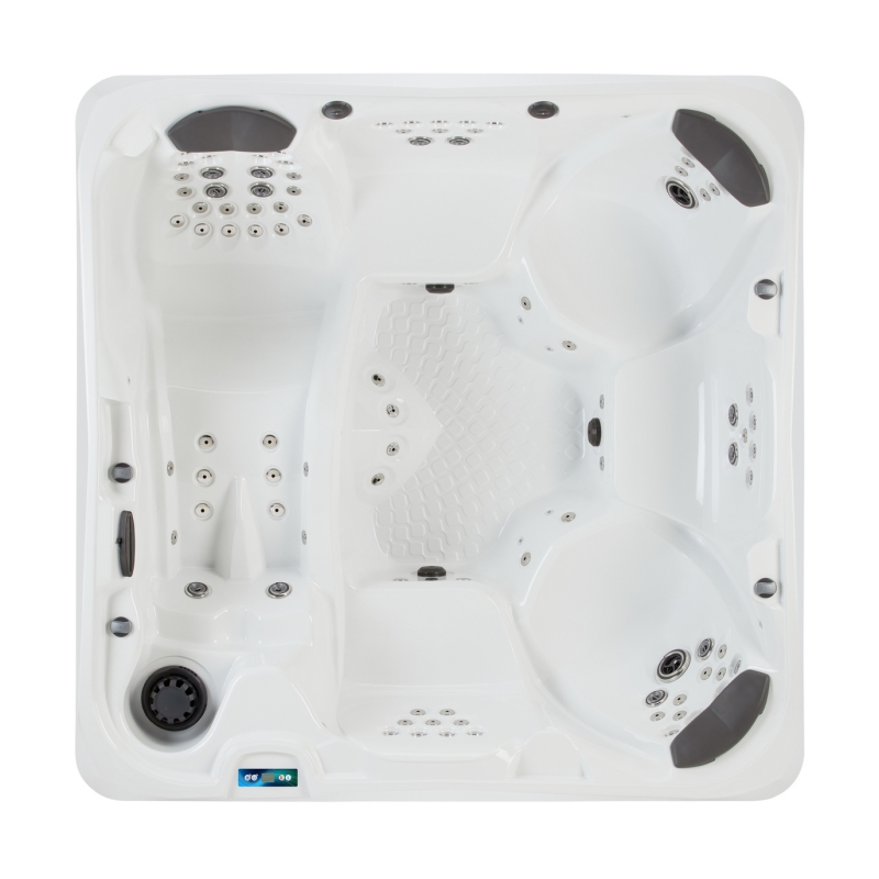 Spezielle Säulen unterstützen die Pool-Schale und verteilen gleichmäßig die Belastung über die Spa-Grundfläche. Die Bodenwanne besteht aus verstärktem ABS-Polymer, welches eine feuchtigkeits- und insektenfeste Barriere bildet. Die zusätzlich aufgebrachte Isolierung schützt vor der Kälte des Bodens.