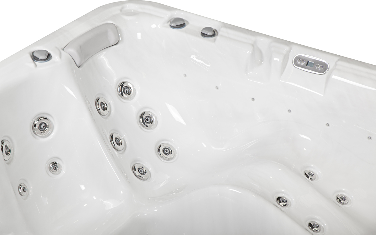Die neuen Spa-Bedienfelder sorgen für eine einfache Bedienung aller Funktionen. Ein großer Bildschirm zeigt die Badetemperatur an und über einfache Touch-Pads können Sie per Berührung alle Spa-Funktionen wie Temperatur, Düsen, Beleuchtung, etc. effektiv anpassen.