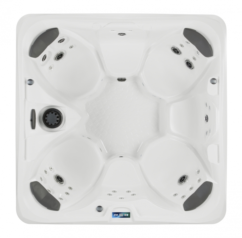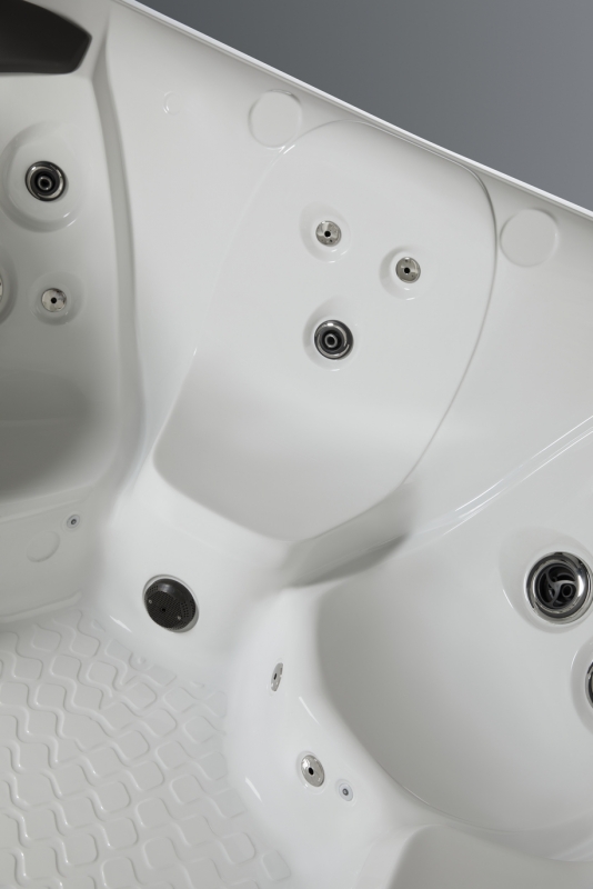 Spezielle Säulen unterstützen die Pool-Schale und verteilen gleichmäßig die Belastung über die Spa-Grundfläche. Die Bodenwanne besteht aus verstärktem ABS-Polymer, welches eine feuchtigkeits- und insektenfeste Barriere bildet. Die zusätzlich aufgebrachte Isolierung schützt vor der Kälte des Bodens.