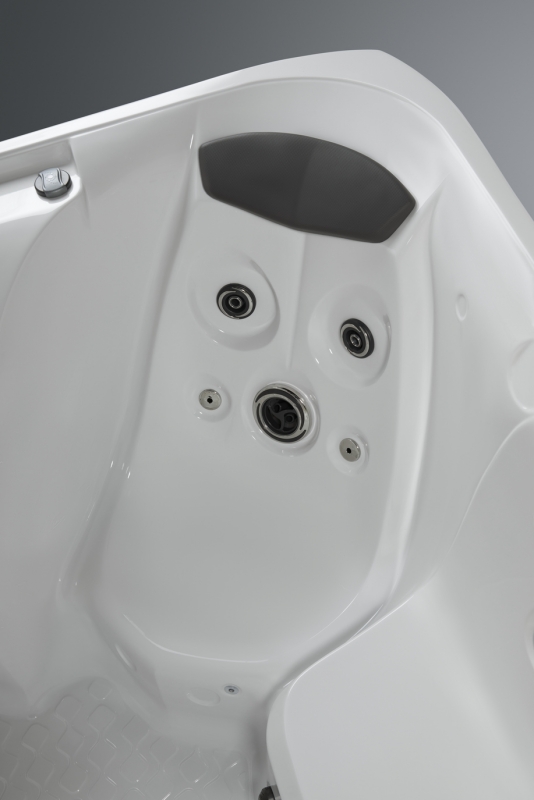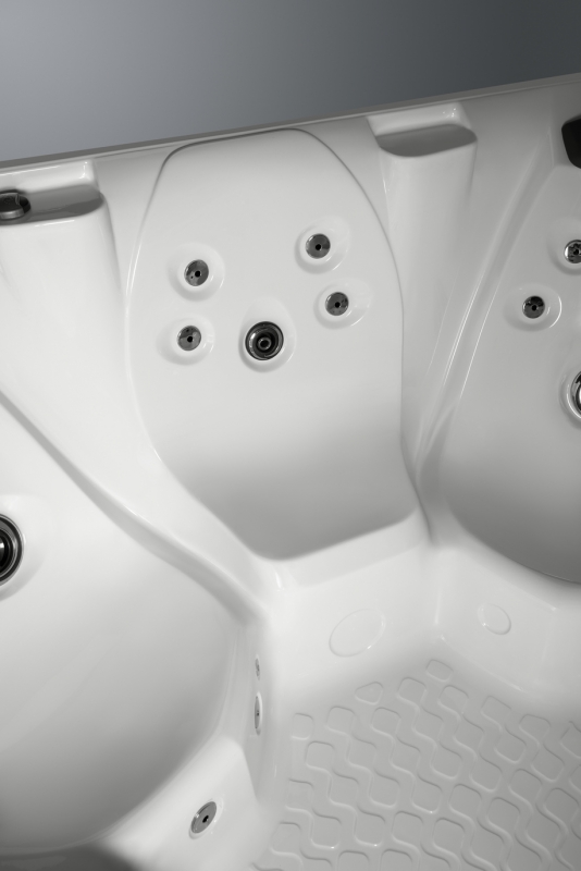 Spezielle Säulen unterstützen die Pool-Schale und verteilen gleichmäßig die Belastung über die Spa-Grundfläche. Die Bodenwanne besteht aus verstärktem ABS-Polymer, welches eine feuchtigkeits- und insektenfeste Barriere bildet. Die zusätzlich aufgebrachte Isolierung schützt vor der Kälte des Bodens.