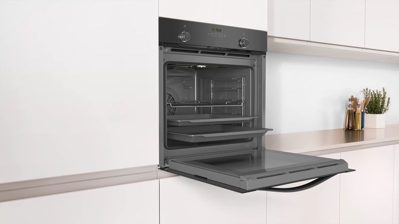 - Backofeninnenraum mit Einhängegittern. Teleskopauszug nachrüstbar