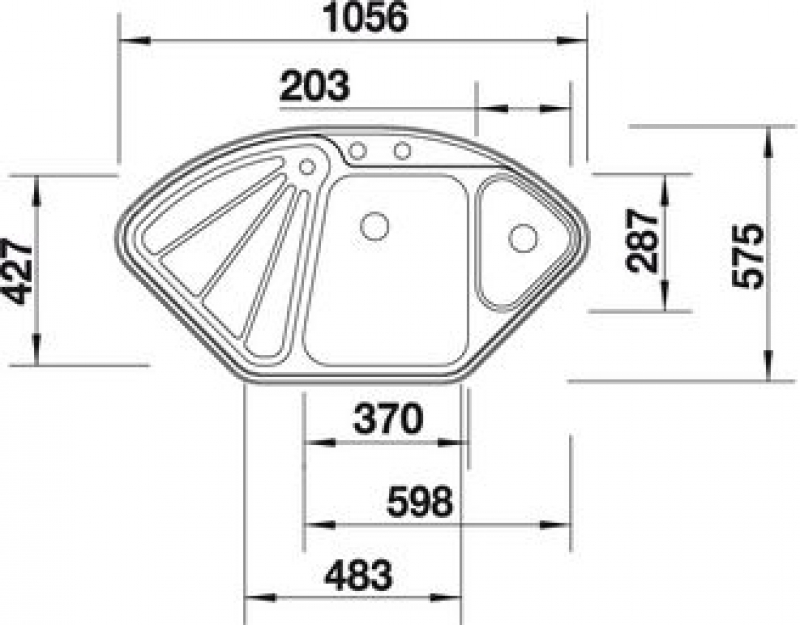 Eck-Spüle Blancodelta-IF Flachrand, Edelstahl Seidenglanz, Restebecken, 90 cm x 90 cm Spüleneckschrank