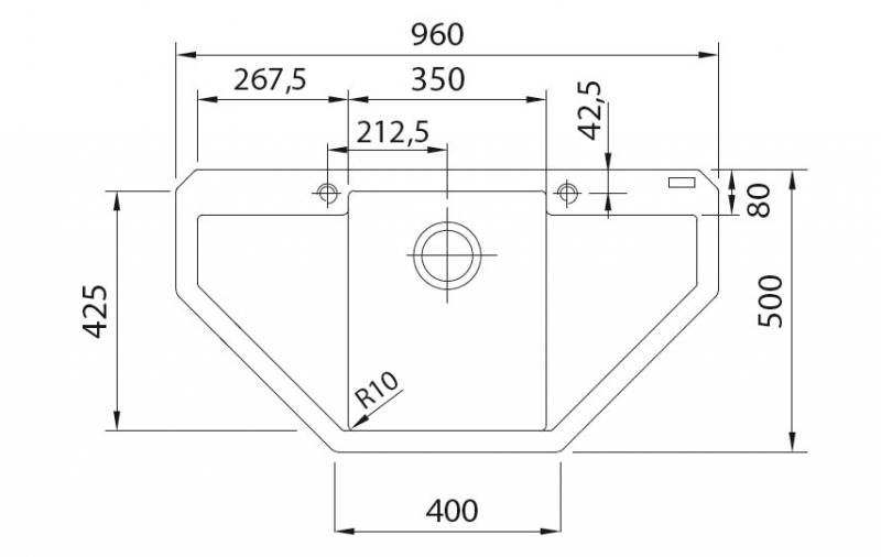 Klare Symmetrie mit zwei tiefer liegenden Abtropfbereichen