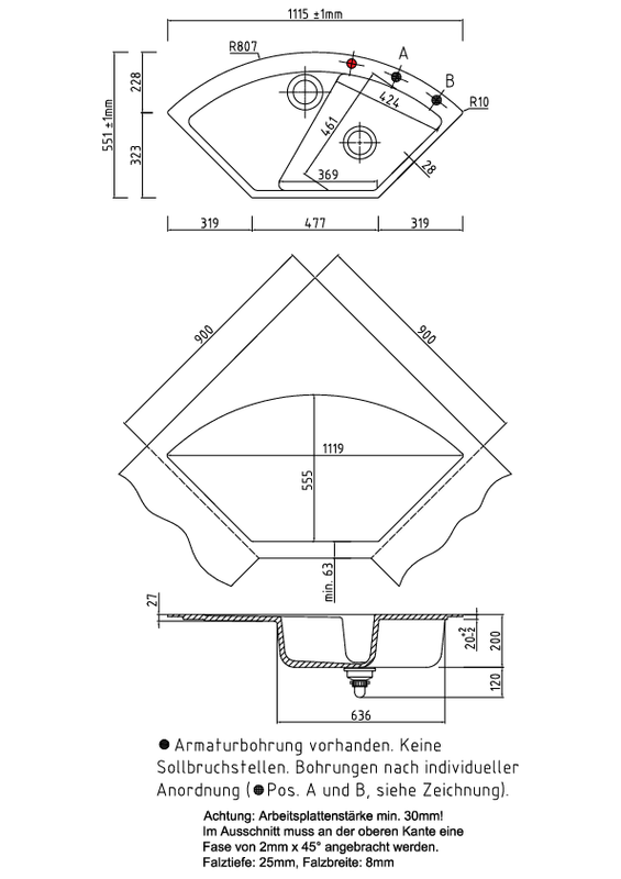 - Der Auslieferungszustand der Spüle beinhaltet eine Lochbohrung für die Armatur. Es sind keine Sollbruchstellen vorhanden; eine oder weitere Durchbohrung(en) kann nur im Werk des Herstellers Systemceram vorgenommen werden. Bitte geben Sie uns dafür exakt die von Ihnen gewünschte Position auf der Spüle an, gern auch anhand einer separaten Email, oder nehmen Sie diesbezüglich mit uns Kontakt auf. Bitte beachten Sie auch, daß Sie durch diese persönliche Positionierung der Lochbohrung einen für Sie individualisierten Artikel bestellen und erwerben, der nur für Sie speziell angefertigt wird. Diese Individualisierung und die damit verbundene nicht gegebene Möglichkeit eines anderweitigen Verkaufes durch uns kann zu einem Nicht-Wirksamwerden des Widerrufrechtes führen, welches individualisierte Produkte ausdrücklich ausnimmt. (Auf eine mit Produktmängeln zusammenhängende Reklamation hat dies selbstverständlich keinen Einfluß). Bitte sprechen Sie uns ggfs. hierauf an.