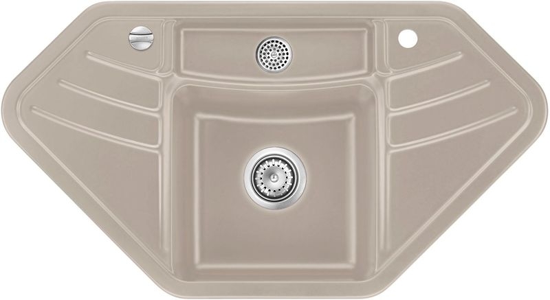 • Der Auslieferungszustand der Spüle beinhaltet eine Lochbohrung für die Armatur. Die zusätzliche(n) Lochbohrung(en) sind vorgestanzt (serienmäßige Vorbohrung); die Oberseite der Spüle ist verschlossen und muß vor Ort an den gekennzeichneten Stellen durchstoßen werden. Soll dies werksseitig vom Hersteller vorgenommen werden, wird dafür 13,-- Euro pro Spüle berechnet