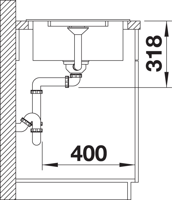 • Maximal groß gestaltetes, geradliniges Becken für den 40 cm Unterschrank