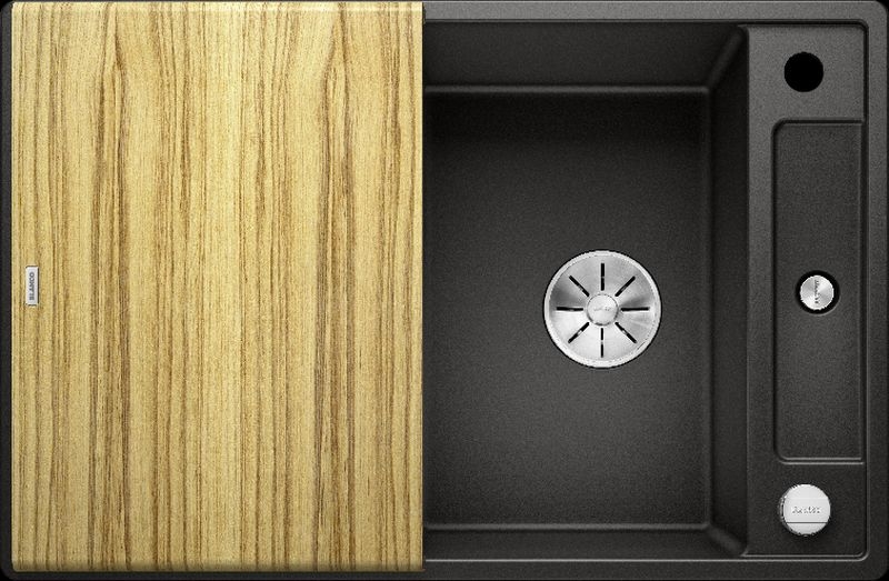 BLANCO Blancoaxia III 45 S Einbauspüle Becken rechts, inklusive Holzschneidbrett, Farbe schwarz