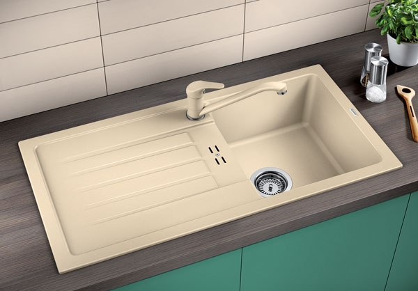 reversibel heißt: die Spüle läßt sich sowohl links als auch rechts herum einbauen; d. h. Sie können selbst entscheiden, ob Sie das Abtropfbecken auf der rechten oder auf der linken Seite haben möchten.