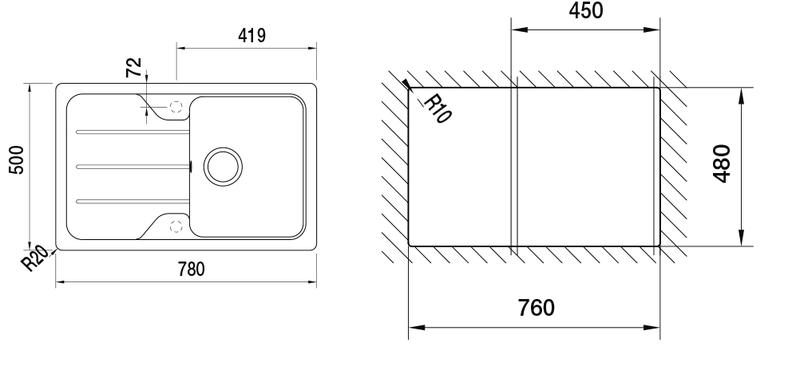 reversibel heißt: die Spüle läßt sich sowohl links als auch rechts herum einbauen; d. h. Sie können selbst entscheiden, ob Sie das Abtropfbecken auf der rechten oder auf der linken Seite haben möchten.
