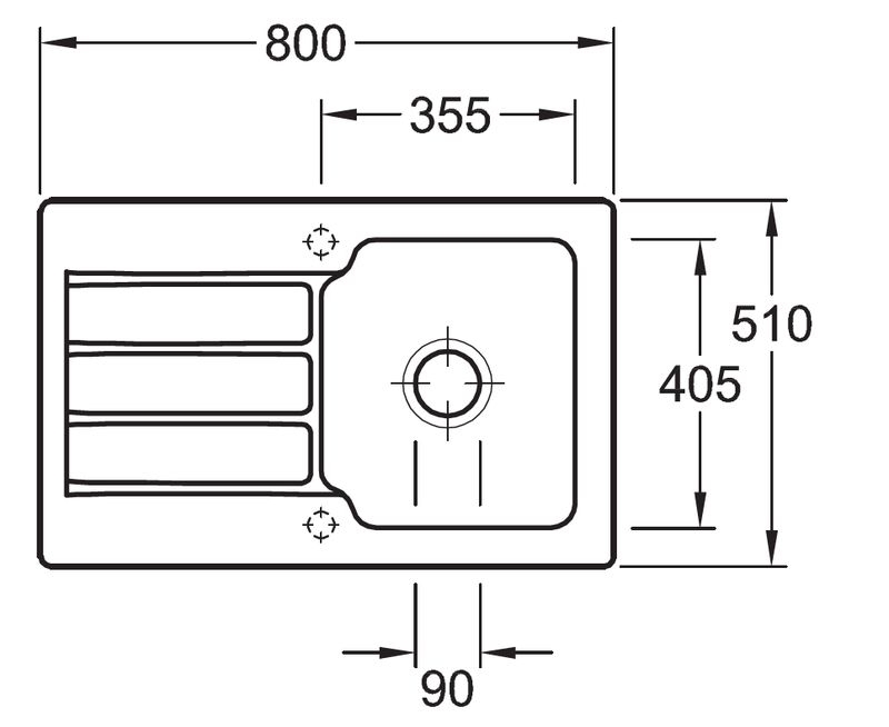 - Spülenmaße: L x B 800 x 510 mm
