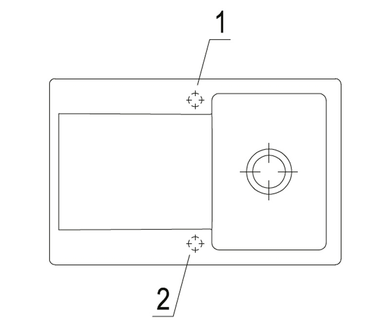 Option "Lochbohrungen durch Hersteller": Wenn Sie wünschen, dass aus Sicherheitsgründen die Lochbohrungen werksseitig vom Hersteller vorgenommen werden sollen, wählen Sie bitte diese Option. Hierfür benötigen wir von Ihnen die Nummern/Positionen des Hahnlochs/der Hahnlöcher, die V & B für Sie durchbohren soll. Bei der Spülenversion mit Handbetätigung benötigen Sie 1 Hahnlochbohrung für die Armatur, bei der Version mit Excenterbetätigung benötigen Sie 2 Lochbohrungen (Armatur und Excenter-Bedienung). Bitte beachten Sie hierzu die unten abgebildeten Maßzeichnungen, da die Positionen der Lochbohrungen bei reversiblen Spülen für die Becken-links und Becken-rechts-Versionen unterschiedlich sein können.