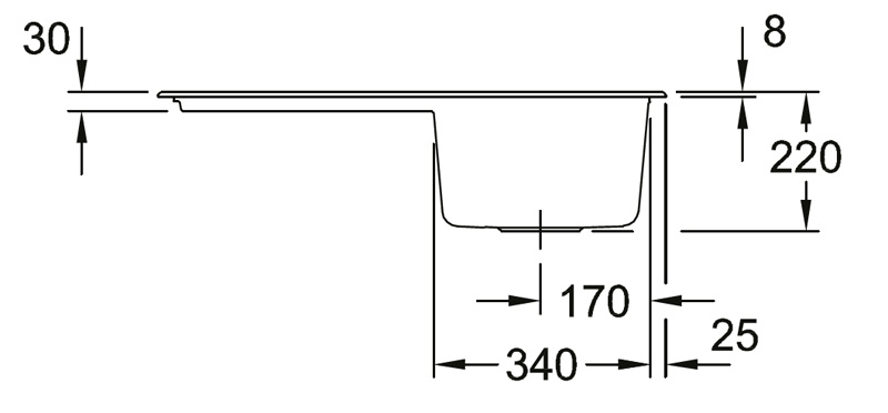 - Spülenmaße: L x B 800 x 510 mm