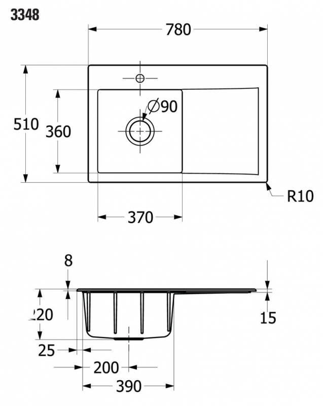 - Spülenmaße: L x B 780 x 510 mm