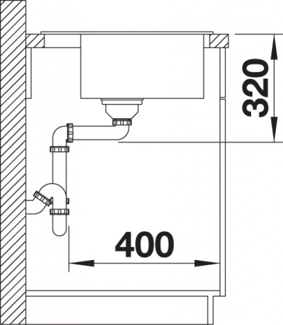 • Ablaufgarnitur mit Raumsparrohr