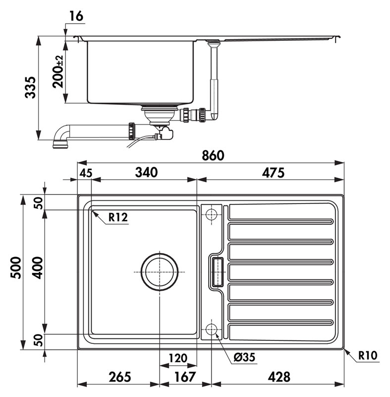 reversibel heißt: die Spüle läßt sich sowohl links als auch rechts herum einbauen; d. h. Sie können selbst entscheiden, ob Sie das Abtropfbecken auf der rechten oder auf der linken Seite haben möchten.