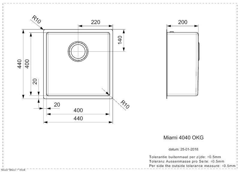 • Abmessung der Spüle: 400 x 400 mm