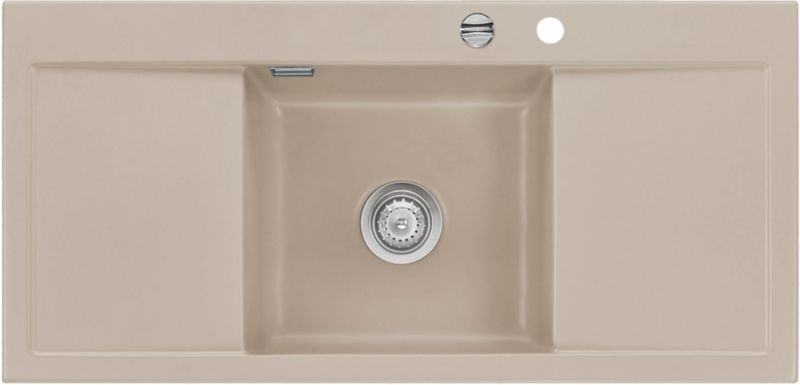 Hinweis: ist auf der oben stehenden Produktabbildung auf der Spüle ein runder Drehknebel zu sehen, handelt es sich um die Version mit Excenter-Betätigung. Eine eventuell abgebildete Armatur gehört nicht zum Lieferumfang.