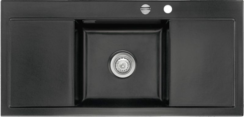 Hinweis: ist auf der oben stehenden Produktabbildung auf der Spüle ein runder Drehknebel zu sehen, handelt es sich um die Version mit Excenter-Betätigung. Eine eventuell abgebildete Armatur gehört nicht zum Lieferumfang.