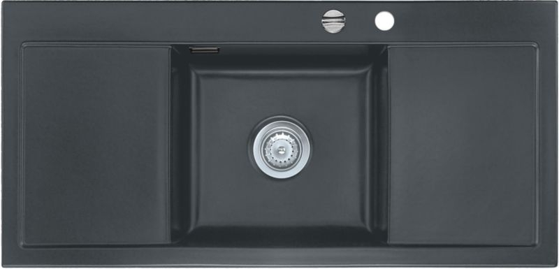 Hinweis: ist auf der oben stehenden Produktabbildung auf der Spüle ein runder Drehknebel zu sehen, handelt es sich um die Version mit Excenter-Betätigung. Eine eventuell abgebildete Armatur gehört nicht zum Lieferumfang.