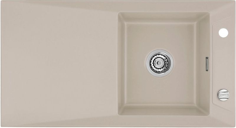 Hinweis: ist auf der oben stehenden Produktabbildung auf der Spüle ein runder Drehknebel zu sehen, handelt es sich um die Version mit Excenter-Betätigung. Eine eventuell abgebildete Armatur gehört nicht zum Lieferumfang.
