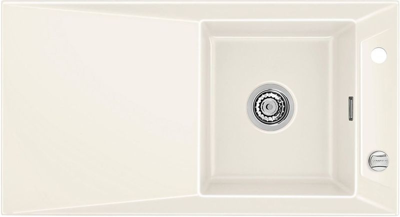 Hinweis: ist auf der oben stehenden Produktabbildung auf der Spüle ein runder Drehknebel zu sehen, handelt es sich um die Version mit Excenter-Betätigung. Eine eventuell abgebildete Armatur gehört nicht zum Lieferumfang.