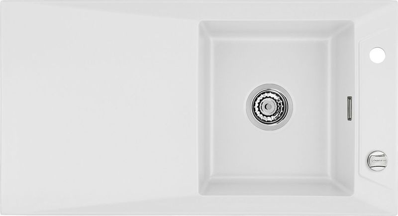 Hinweis: ist auf der oben stehenden Produktabbildung auf der Spüle ein runder Drehknebel zu sehen, handelt es sich um die Version mit Excenter-Betätigung. Eine eventuell abgebildete Armatur gehört nicht zum Lieferumfang.