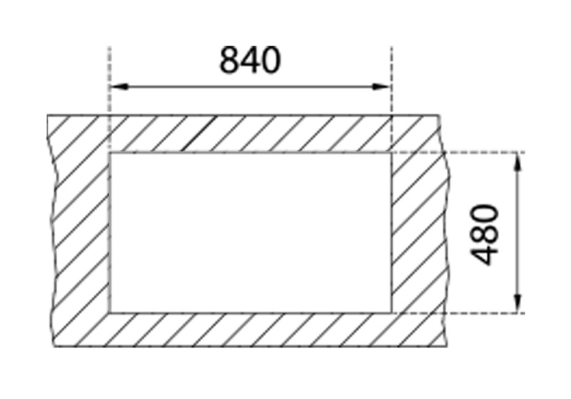• Arbeitsplattenausschnitt LxB ca. 840x480 mm
