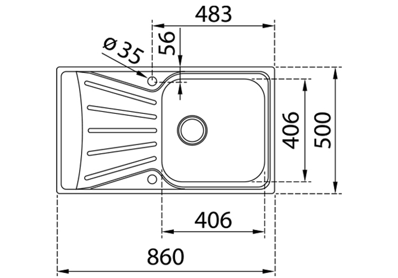 reversibel heißt: die Spüle läßt sich sowohl links als auch rechts herum einbauen; d. h. Sie können selbst entscheiden, ob Sie das Abtropfbecken auf der rechten oder auf der linken Seite haben möchten.