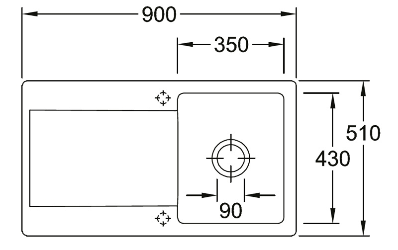 Hinweis: ist auf der oben stehenden Produktabbildung auf der Spüle ein runder Drehknebel zu sehen, handelt es sich um die Version mit Excenter-Betätigung. Eine eventuell abgebildete Armatur gehört nicht zum Lieferumfang.