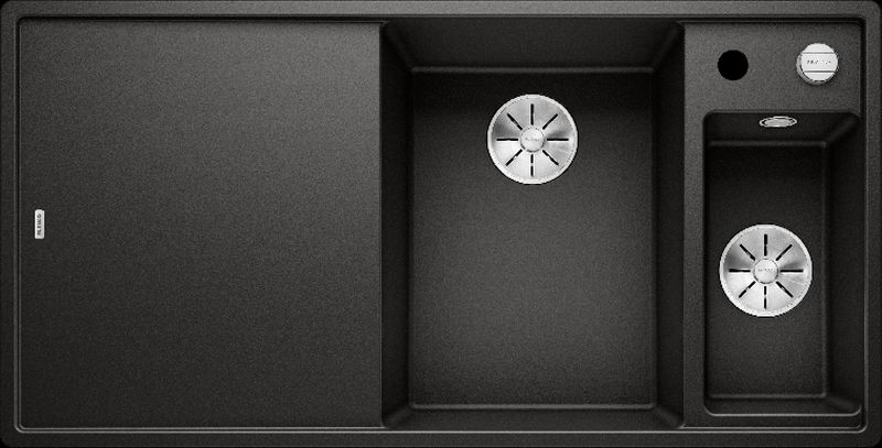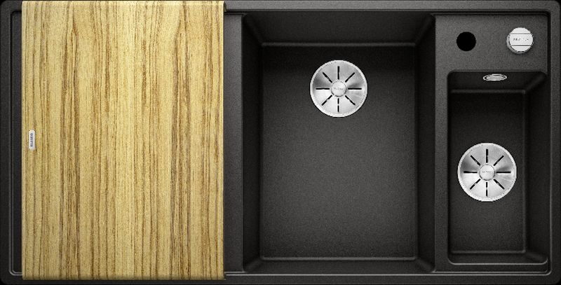 Blanco Axia III 6 S Silgranit PuraDur, Farbe schwarz, Holzschneidbrett, Becken rechts, InFino Ablauf, 525851