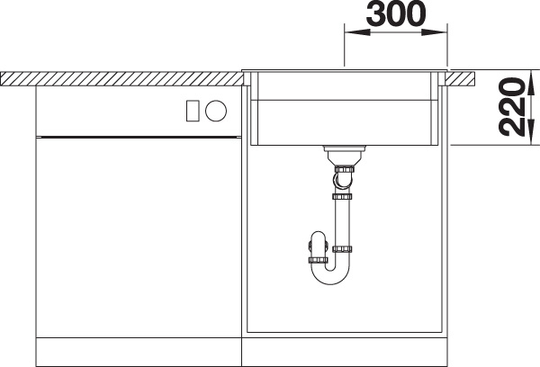 • Ab- und Überlaufgarnitur mit Raumsparrohr