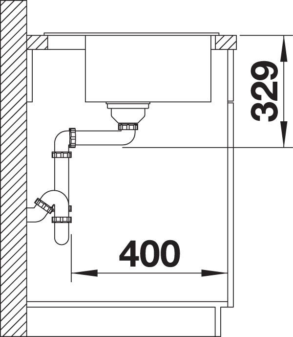 • Ablaufgarnitur mit Raumsparrohr, 3 1/2'' Korbventil, ohne Ablauffernbedienung