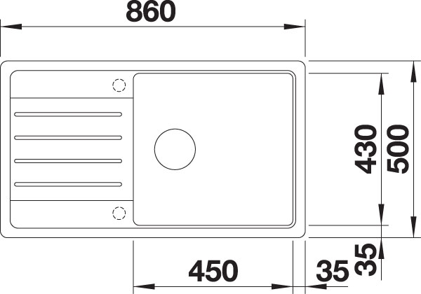 • Beckengröße: 450 x 430 mm