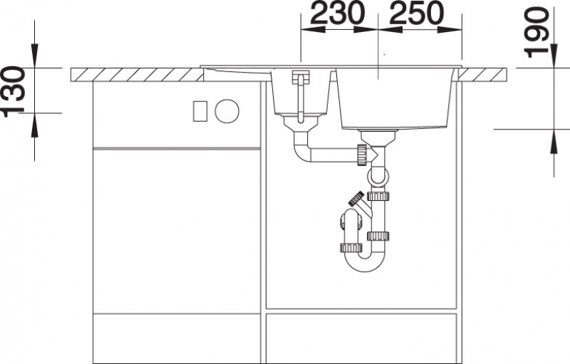 • Beckentiefe 190 mm