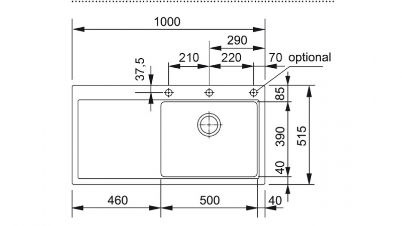 Einbauspüle Franke Mythos MTG 611-100, ab 60 cm Spülenschrank, Fragranit DuraKleen Plus, Druckknopfventil, Becken rechts, Farbe Steingrau, 114.0476.999