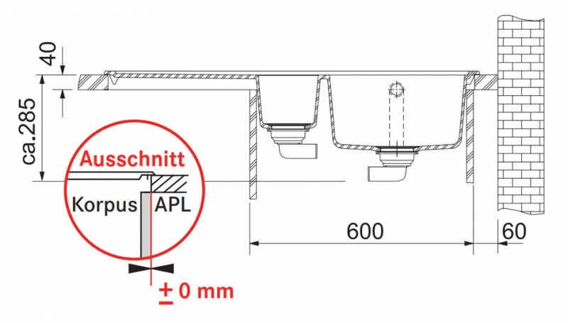 Inklusive Ablaufgarnitur und Abtropfbecken