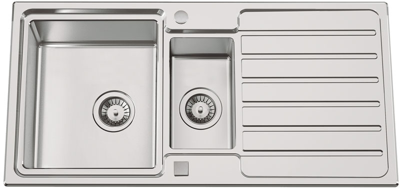 reversibel heißt: die Spüle läßt sich sowohl links als auch rechts herum einbauen; d. h. Sie können selbst entscheiden, ob Sie das Abtropfbecken auf der rechten oder auf der linken Seite haben möchten.