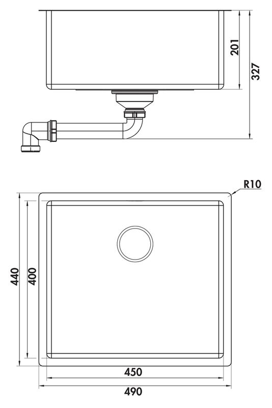 Spülenmaß: 440 x 490 mm